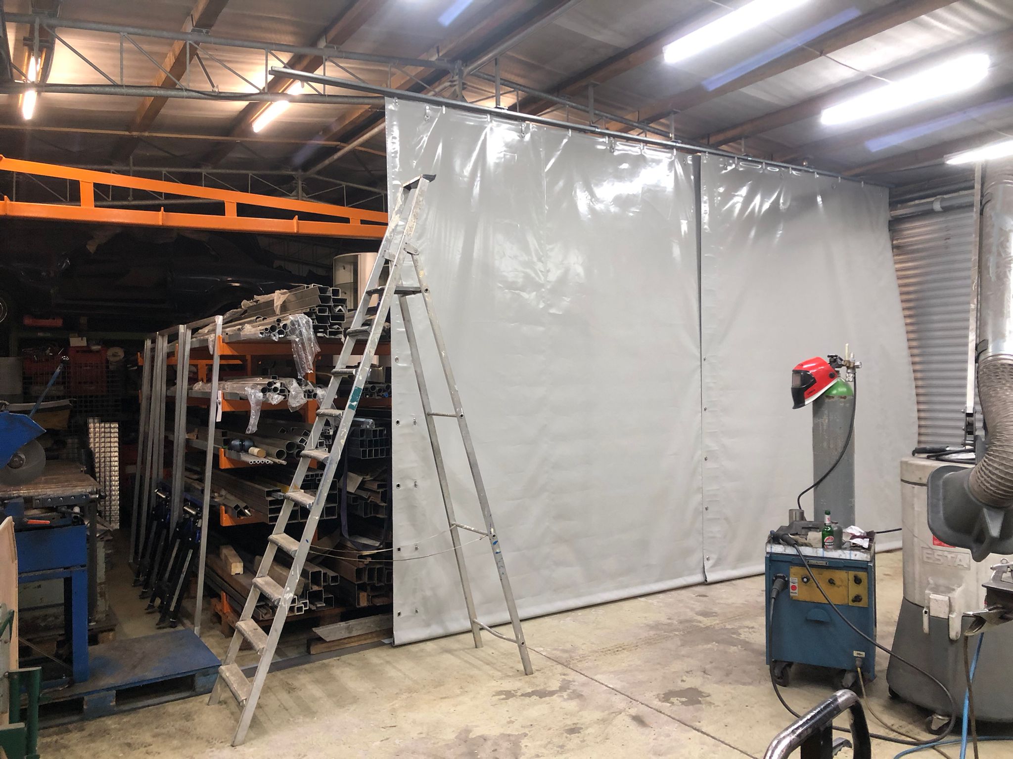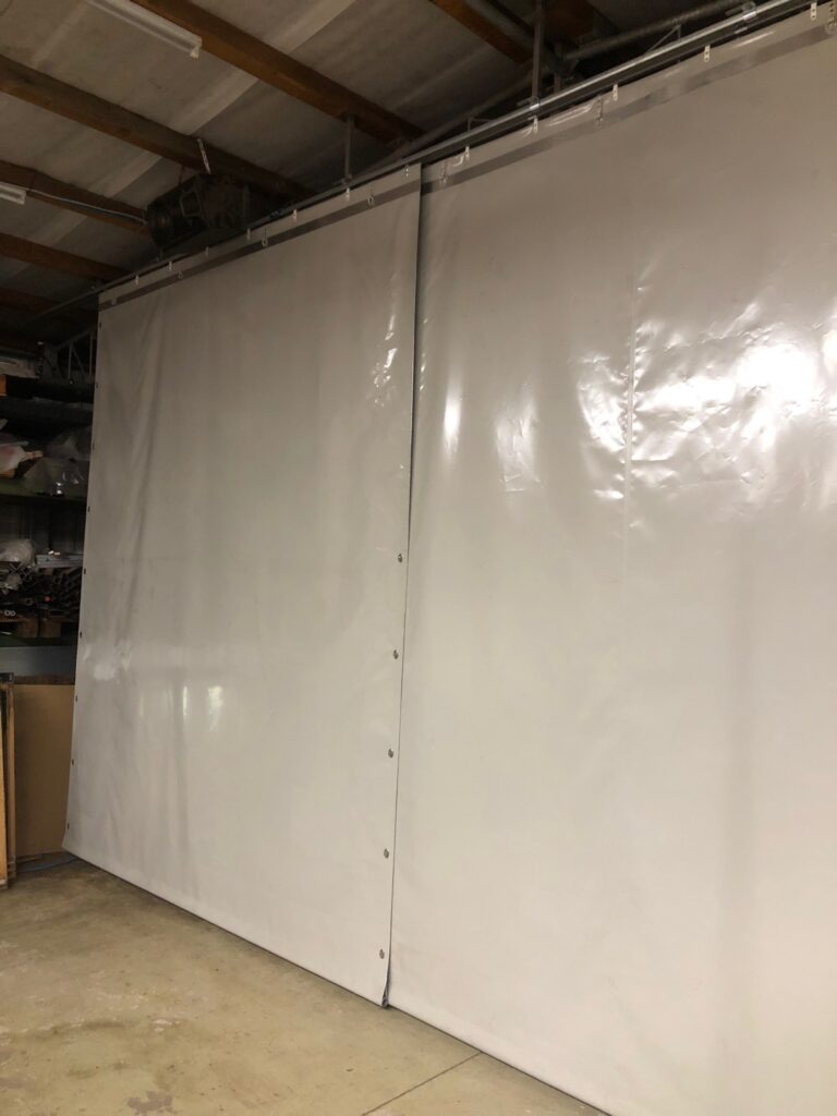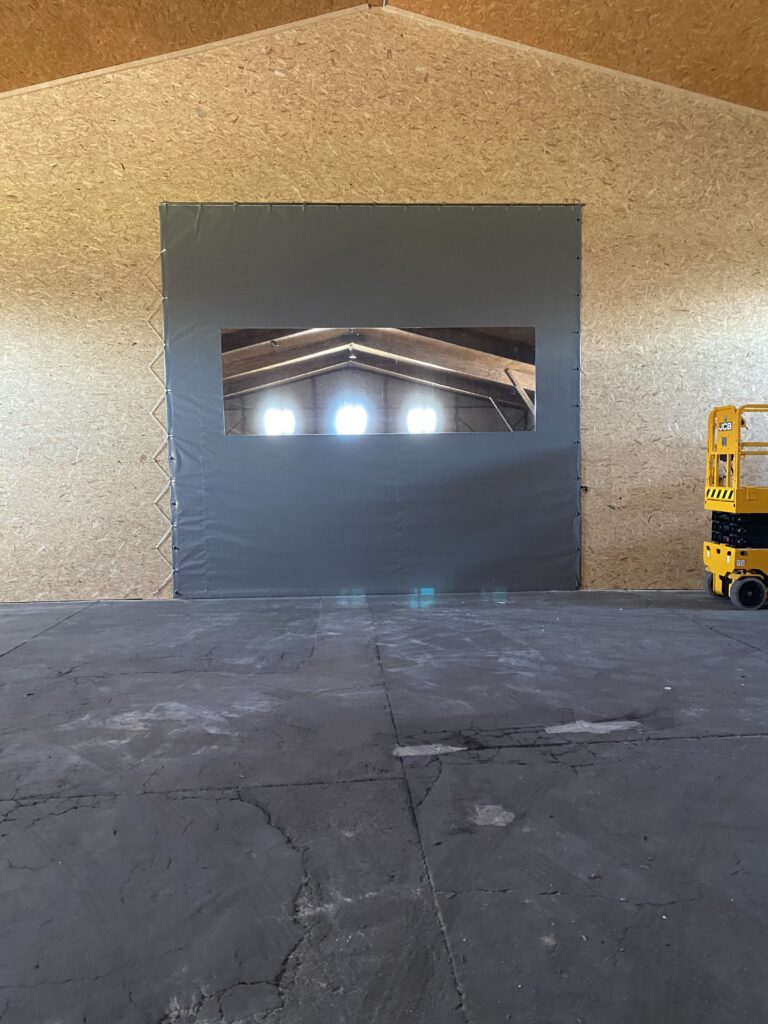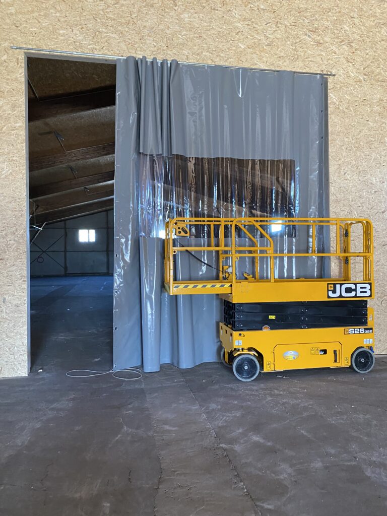 - Vorhänge oder Trennwände – Flexible Raumlösungen, z. B. Hallenabtrennung mit PVC-Streifenvorhängen.