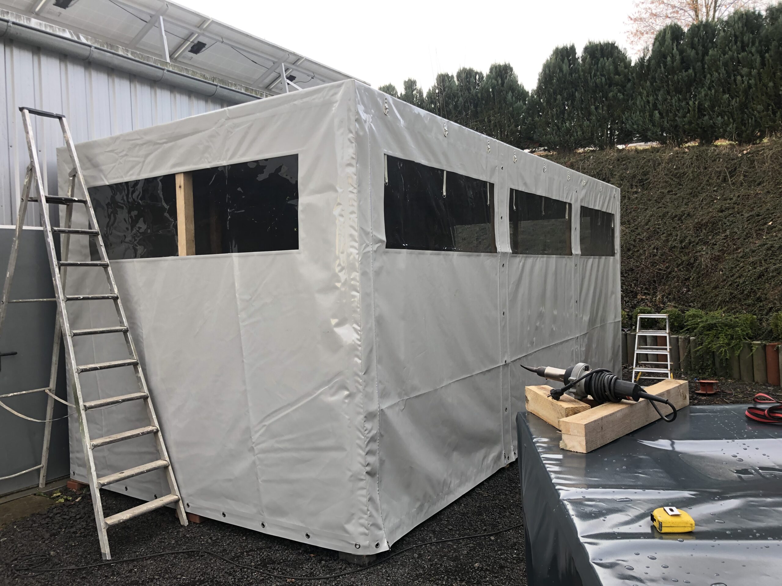 - Zelt- und Hallenbau – Abdeckungen oder Wände für mobile Lagerzelte, Ställe oder Maschinenhallen.