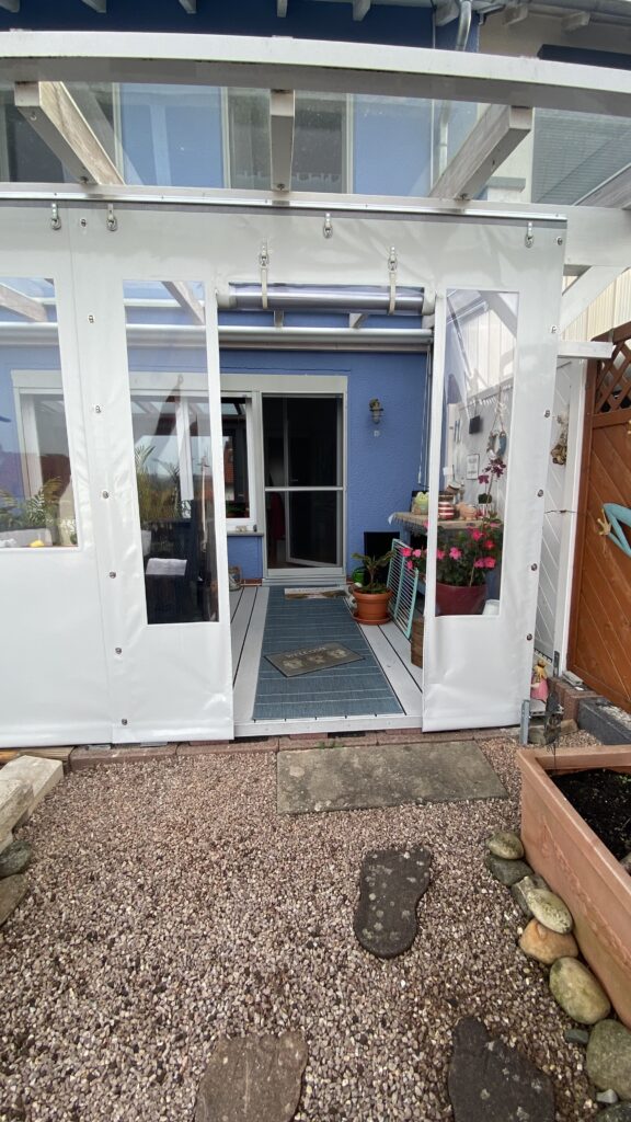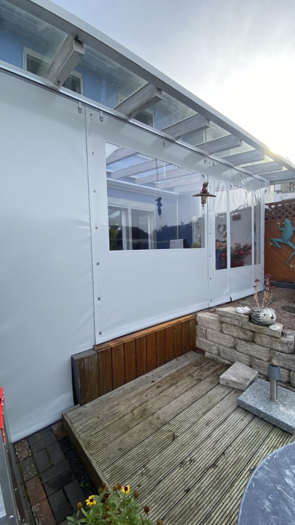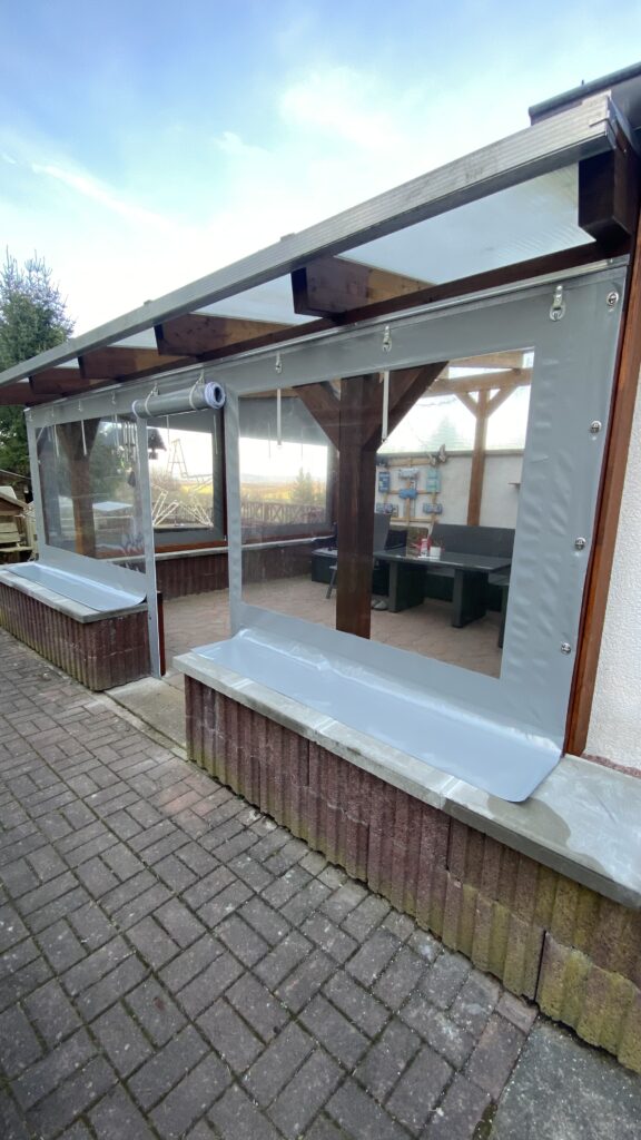 Schützen Sie Ihre Terrasse, Ihren Balkon oder Ihre Outdoor-Lounge ganzjährig mit unseren hochwertigen Terrassen- / Carportvorhängen aus robustem PVC-Planenstoff. Ob mit integrierten Klarsichtfenstern für freie Sicht oder in geschlossener Ausführung für maximale Privatsphäre – unsere Vorhänge bieten maßgeschneiderten Schutz vor Wind, Regen, UV-Strahlung und neugierigen Blicken.