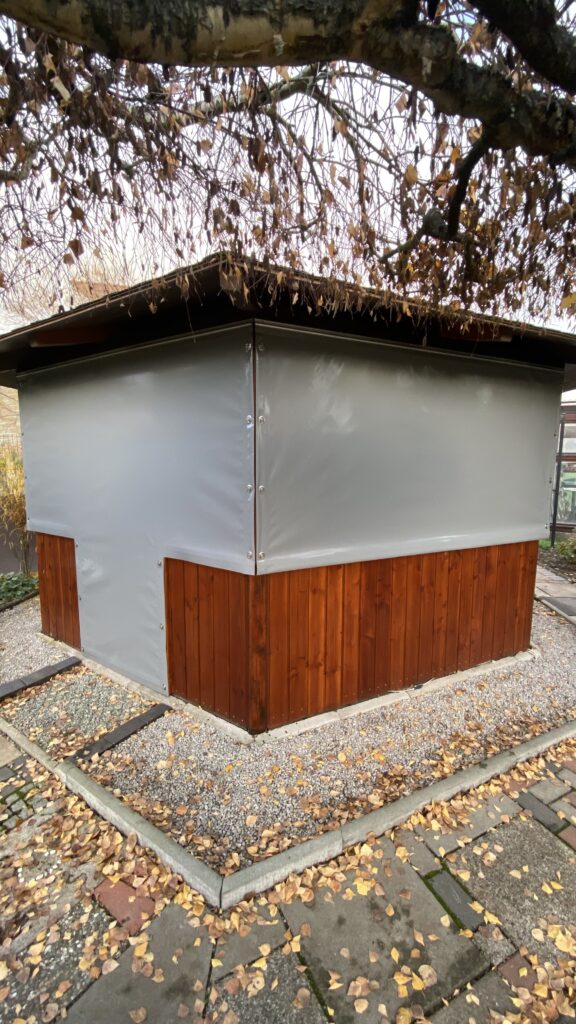 - Widerstandsfähiger PVC-Planenstoff (650–900 g/m²) – reißfest, langlebig & wetterbeständig